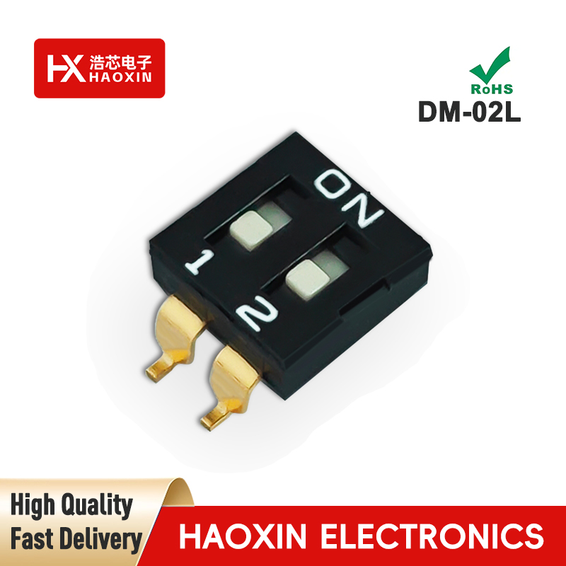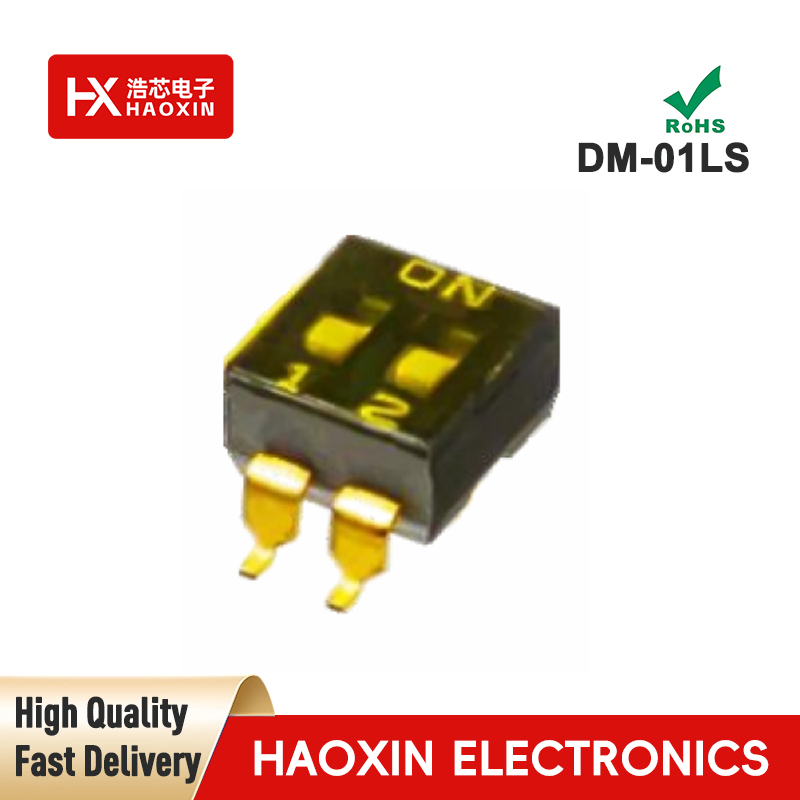 SMD&SMT Haoxin Brand DM 2.54 Series DIP Switches, covering specifications from 2P to 12P. These DIP switches not only withstand high temperatures and boast a long lifespan, but crucially, their tactile feedback delivers the satisfying click of popping bubble wrap! Whether you're developing smart home systems, debugging automation equipment, or testing circuit boards, it ensures every signal transmission link remains rock-solid stable. Don't be swayed by other brands—Haoxin is a professional DIP switch manufacturer with 20 years of industry expertise, standing tall in the market with better pricing, better service, and better quality.
