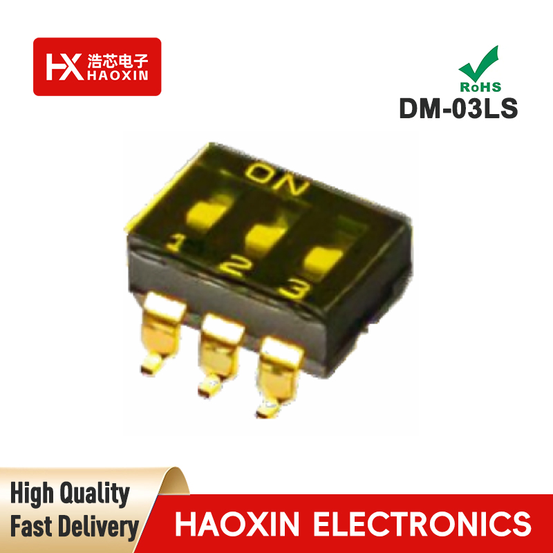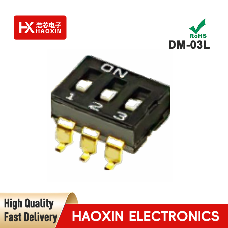 SMD&SMT Haoxin Brand DM 2.54 Series DIP Switches, covering specifications from 2P to 12P. These DIP switches not only withstand high temperatures and boast a long lifespan, but crucially, their tactile feedback delivers the satisfying click of popping bubble wrap! Whether you're developing smart home systems, debugging automation equipment, or testing circuit boards, it ensures every signal transmission link remains rock-solid stable. Don't be swayed by other brands—Haoxin is a professional DIP switch manufacturer with 20 years of industry expertise, standing tall in the market with better pricing, better service, and better quality.