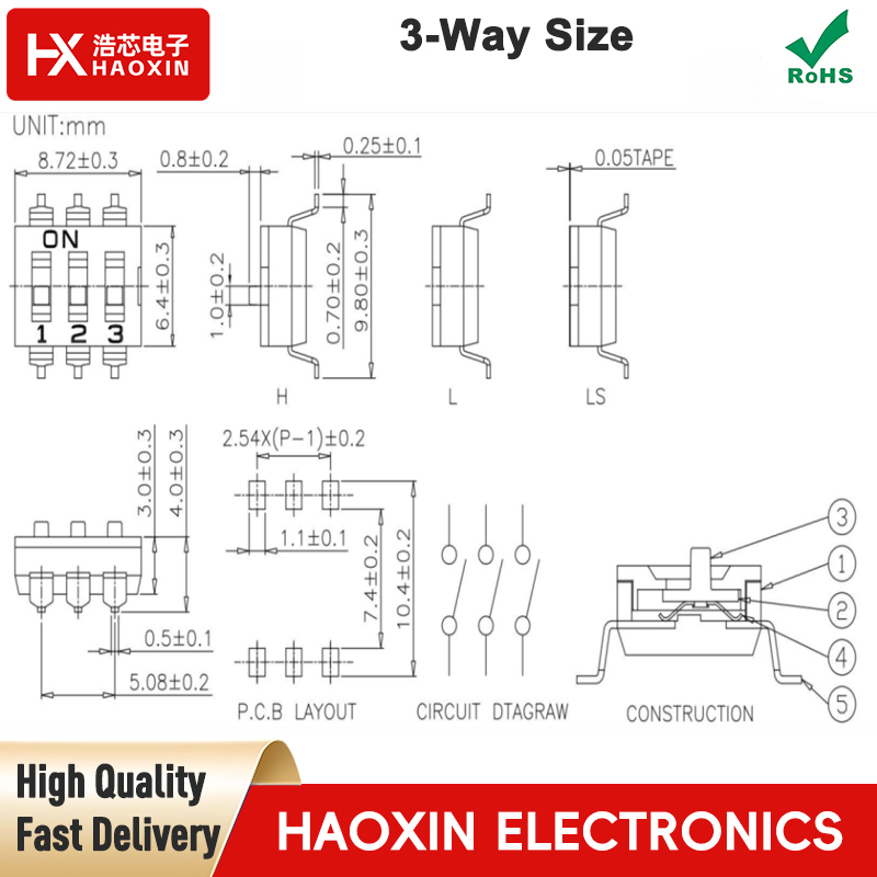 Haoxin 2.54mm SMD&SMT Type DIP Switches Core Advantages: