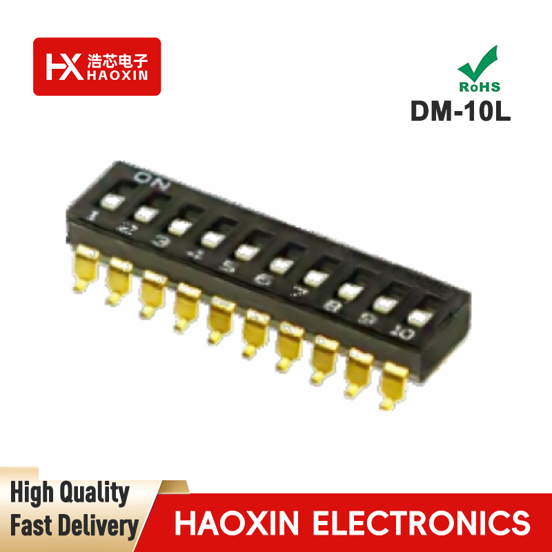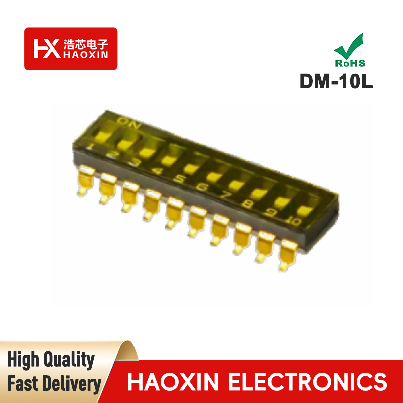 SMD&SMT Haoxin Brand DM 2.54 Series DIP Switches, covering specifications from 2P to 12P. These DIP switches not only withstand high temperatures and boast a long lifespan, but crucially, their tactile feedback delivers the satisfying click of popping bubble wrap! Whether you're developing smart home systems, debugging automation equipment, or testing circuit boards, it ensures every signal transmission link remains rock-solid stable. Don't be swayed by other brands—Haoxin is a professional DIP switch manufacturer with 20 years of industry expertise, standing tall in the market with better pricing, better service, and better quality.