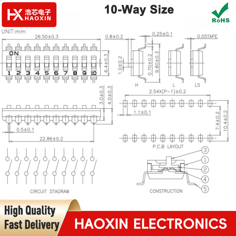 Haoxin 2.54mm SMD&SMT Type DIP Switches Core Advantages: